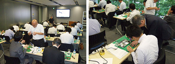今回の勉強会は、電波新聞社取締役で電子工作マガジン編集長の大橋太郎氏による「電子ホビー60年の軌跡と最新の電子工作トレンド」のテーマで実際に電子工作にもチャレンジしていただきました。プリント基板へのはんだ付けでは、細かい作業に悪戦苦闘されながらも、最後のプログラム入力はスイスイこなしている方が多く、さすがIT会のメンバーと思わせる楽しい勉強会でした。