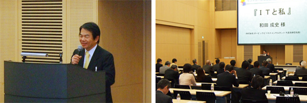 今回は当会会員でもあり、立教経済人クラブ会長の和田 成史氏((株)オービックビジネスコンサルタント 代表取締役社長)が『ITと私』というテーマで、講演をして下さいました。和田氏が公認会計士となられ起業されてから現在に至るまでのITとの関わり、IT業界の変化、そして、現状と今後への展望を含めたお話をして下さいました。