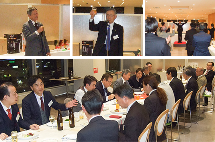 大塚会長の挨拶に始まり、吉羽真治様による乾杯の後、会員ご提供の賞品によるビンゴ大会、名刺交換などが行われ、応援歌、校歌の斉唱と、盛り上がりのうちにお開きとなりました。